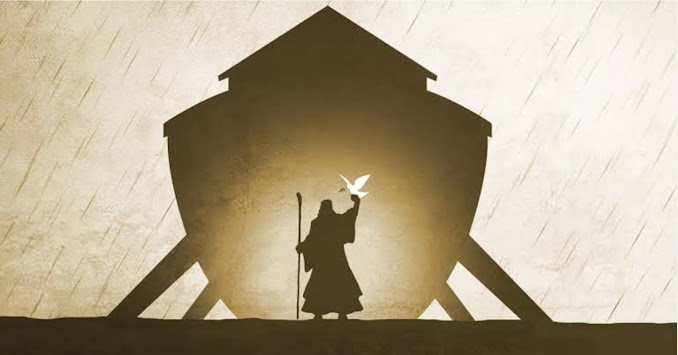Bahtera Nuh, melambangakan Kristus di Surga yang sedang membangun rumah bagi umat-Nya di bumi.